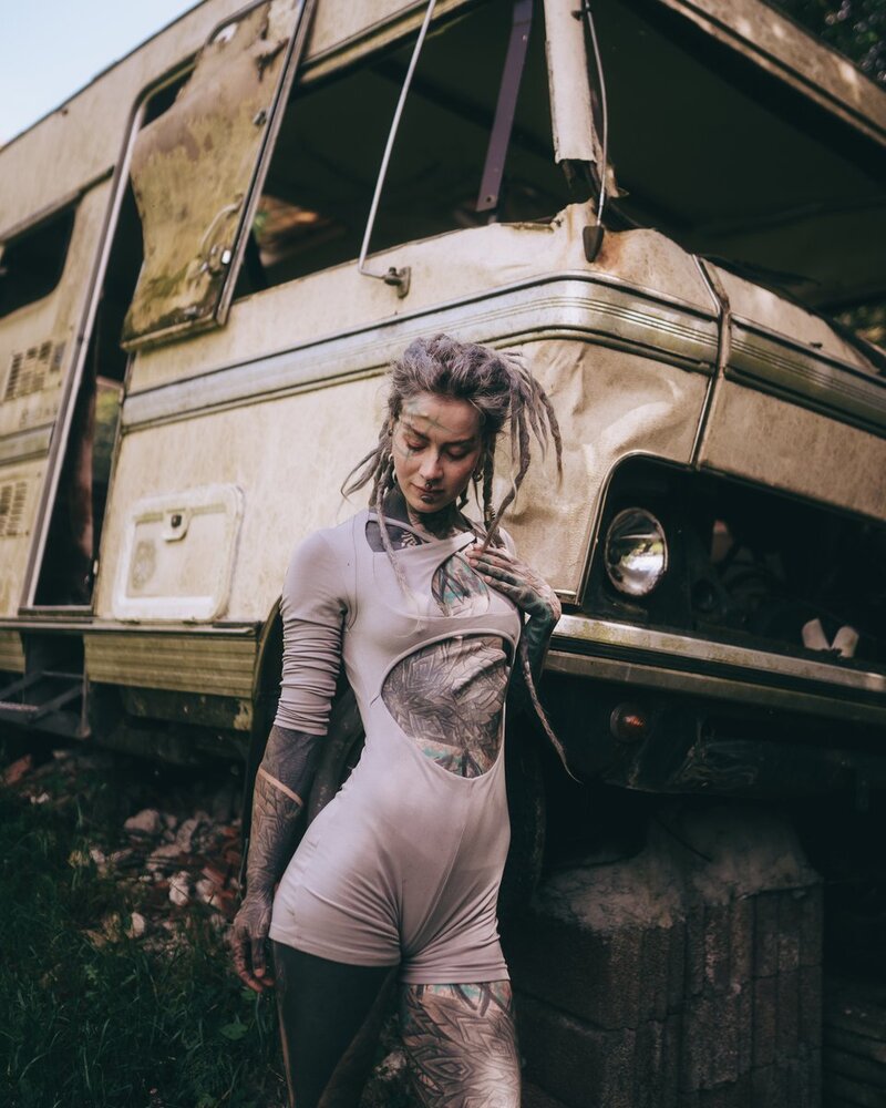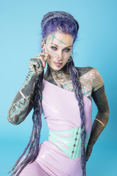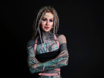 A heavily tattooed alternative dreadhead.